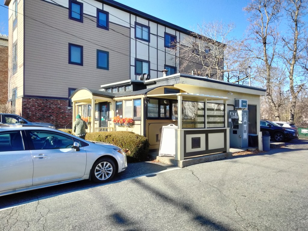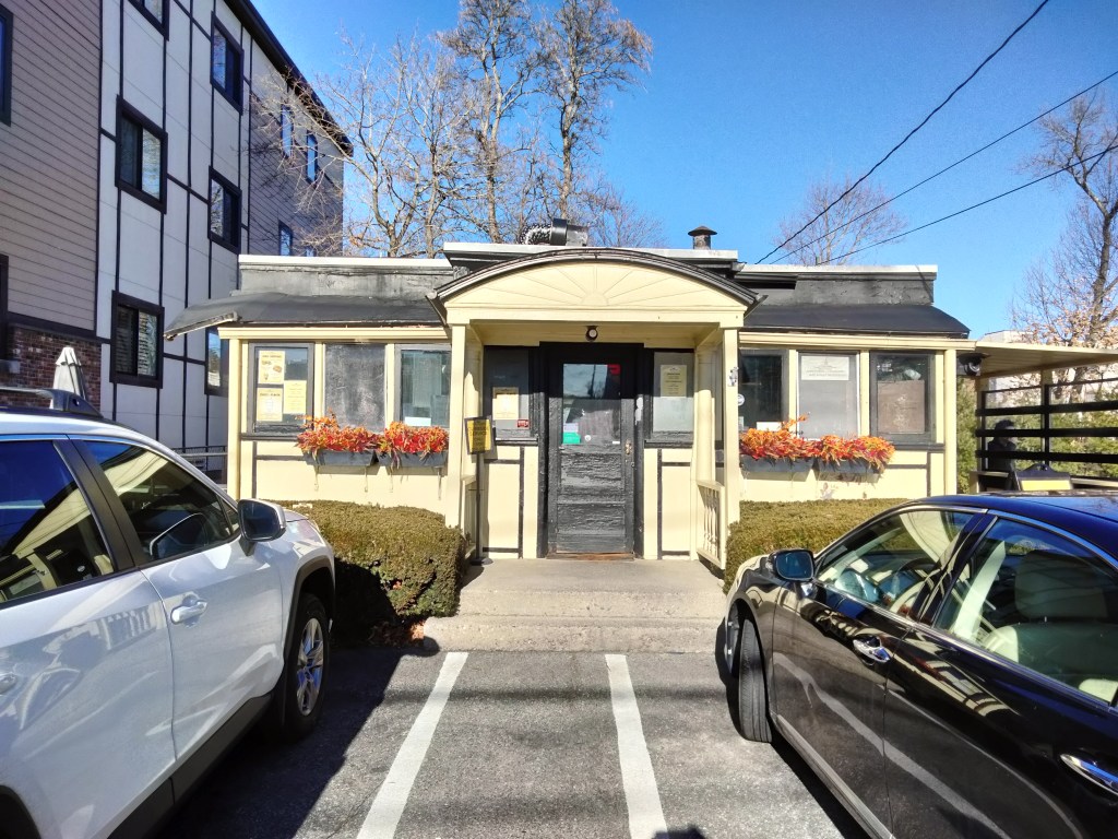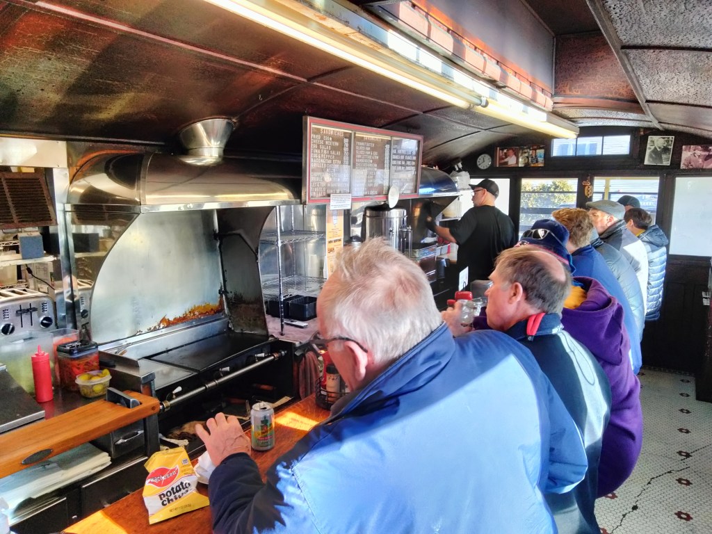 Ten stools. That’s the entire capacity of the diner. Wait inside? No chance. The only place to wait is under that overhand to the right, and that’s the takeout window/doordash pickup spot. Inside is the most cramped thing you can imagine.
