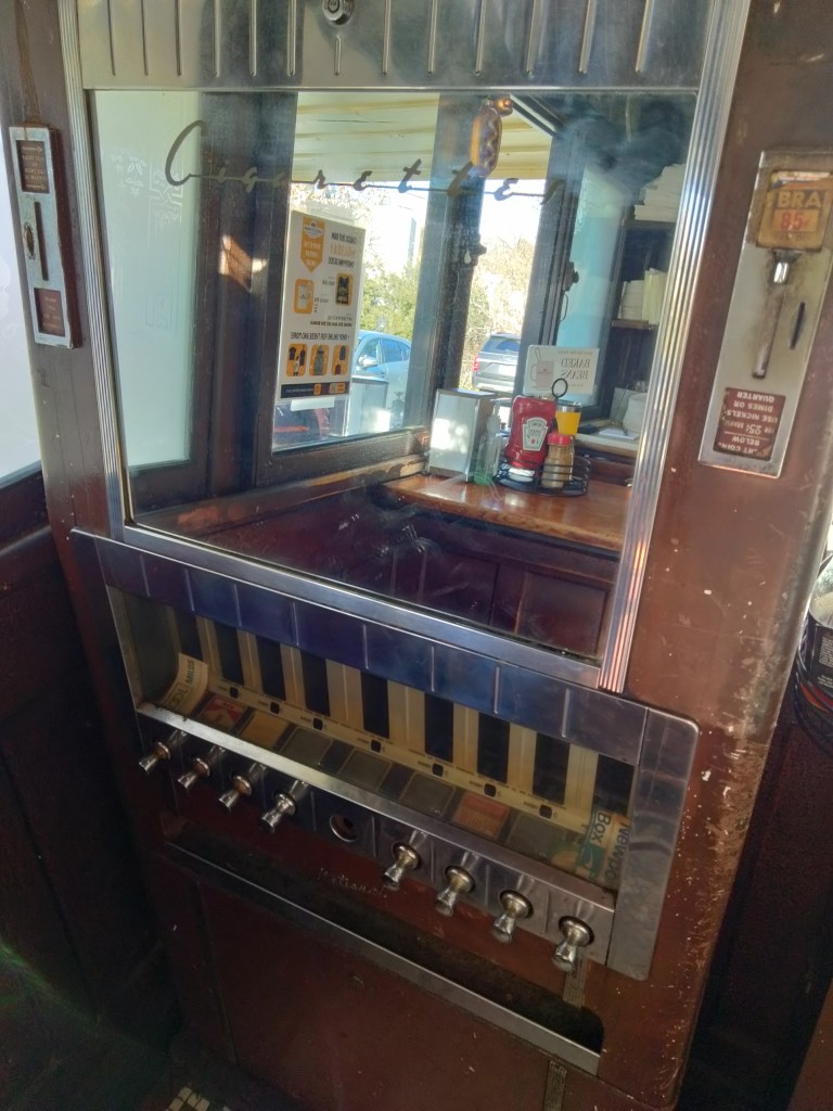 Everything there was from a bygone era down to the, now empty, cigarette machine by the takeout window.