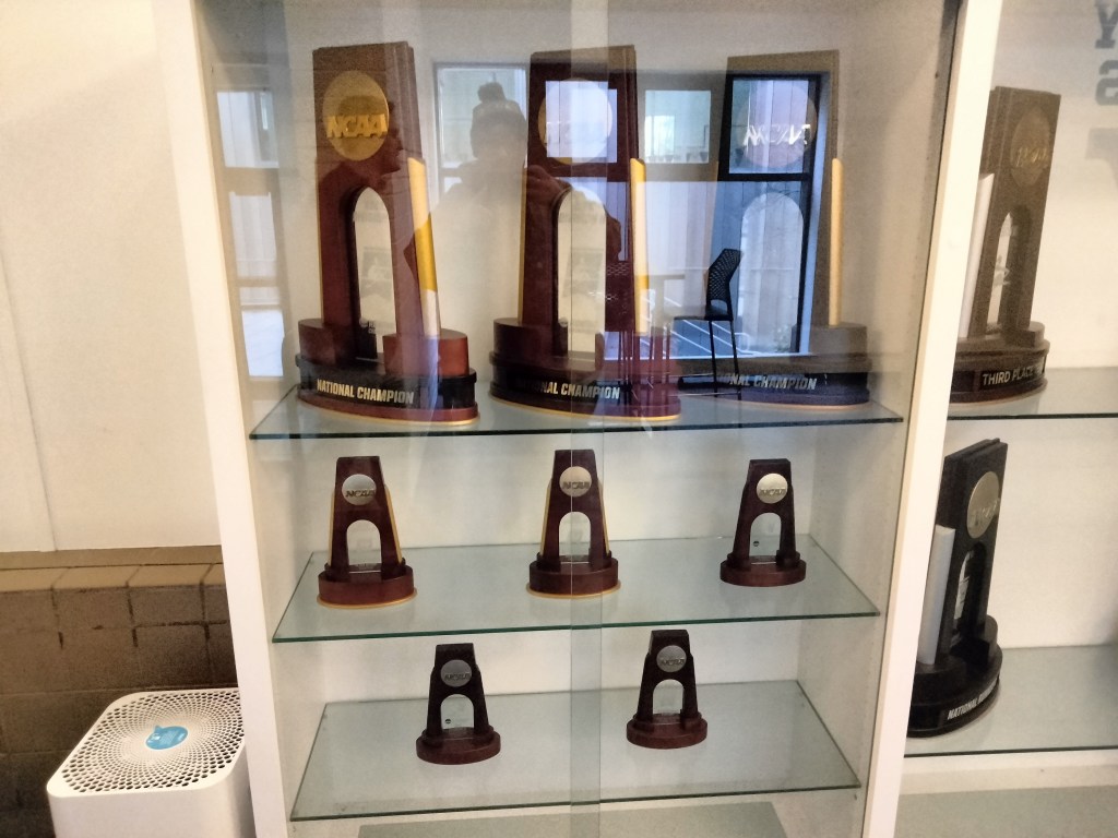 The KSC houses locker rooms and team offices as well as squash courts and training areas. Upon walking in you’re immediately greeted by the school’s trophy case. The centerpiece are the three national championship trophies won by the rowing team.