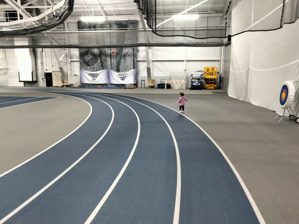 If you have young kids, find your local D3 and use it as a playground. Sure beats going to a crowded mall and having your kid wowed by some product you’ll then wind up buying. And the fieldhouse had a whole bunch of high jump landing pads I could toss her around on. Macy’s won’t have that.
