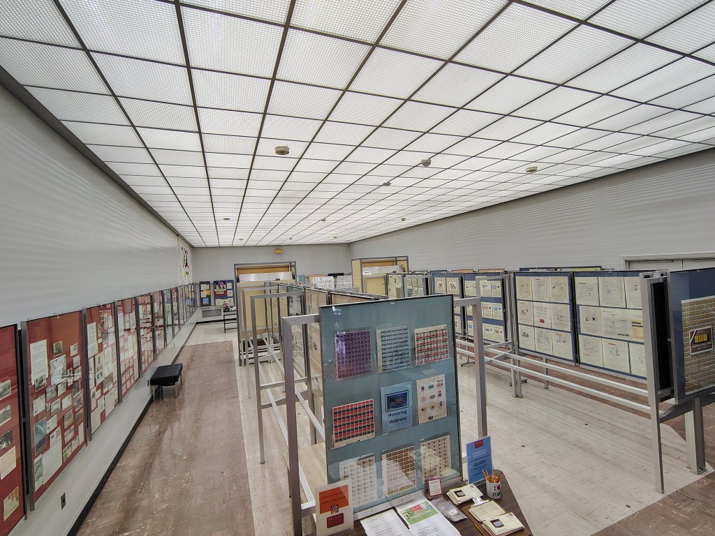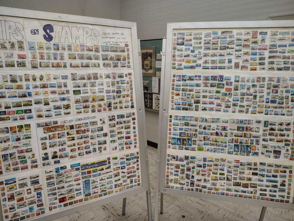 Is it the biggest room? No. Is it overflowing? Absolutely. Frames upon frames, display after display of all things stamps.