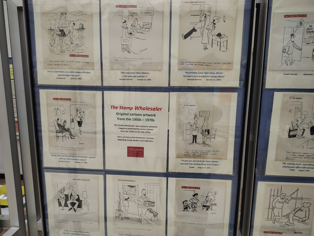 There were cartoons from the old The Stamp Wholesaler magazine. It’s just stamps all the way down in every possible way.