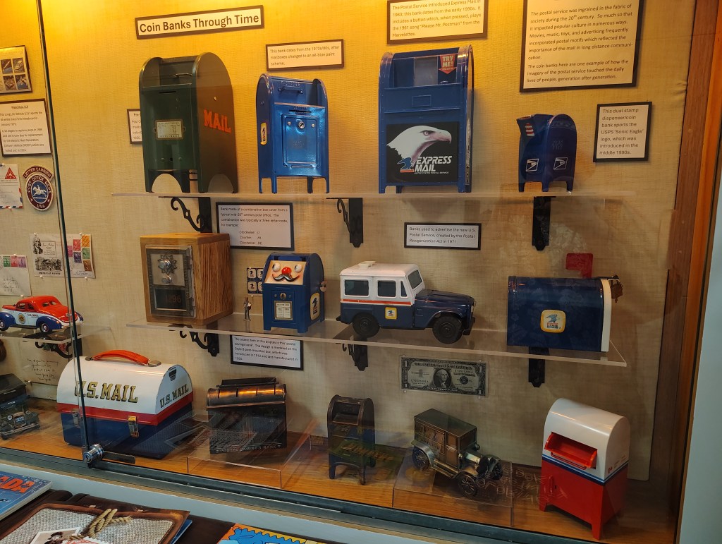 The hallway down the back showcases all sorts of postal ephemera like letter openers and other old devices.
